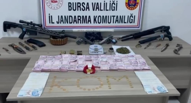 Bursa İl Jandarma Komutanlığına bağlı birim ve birlikler tarafından vatandaşların huzur ve güvenliğini sağlamak maksadıyla 28 Ekim-4 Kasım tarihleri arasında çok sayıda operasyon yapıldı. Suçluları yakalamak ve suçu azaltmak için yapılan operasyonda kentin birçok noktasında yakın takipler başladı. Ekipler çeşitli suçlardan aranan 10 şüpheliyi yakalarken, D.T. ve Ö.D. isimli şüphelilerin ev ve iş yerlerinde yapılan aramada; 15 kilo uyuşturucu, 5 adet silah, 1 av tüfeği, 321 adet 9 mm çapında fişek, 3 adet hassas terazi, 66 bin basılmış sigara, 5 litre sıvı metamfetamin, 5 bin bandrolsüz sigara, 22 adet uyuşturucu madde kullanma aparatı, 36 adet metamfetamin imalinde kullanılan muhtelif malzeme aparat, 83 adet elektronik sigara likiti, 900 gram pipo tütünü, 12 bin 600 adet bandrolsüz makaron ele geçirildi. İşlemlerinin ardından adliyeye sevk edilen 10 şüpheliden K.E., Ö.Y., U.D., İ.B., D.T. ve Ö.D. isimli 6 şahıs tutuklanırken, B.Ç., N.C., R.C., M.C. isimli şahıslar da adli kontrol kararıyla serbest bırakıldı.