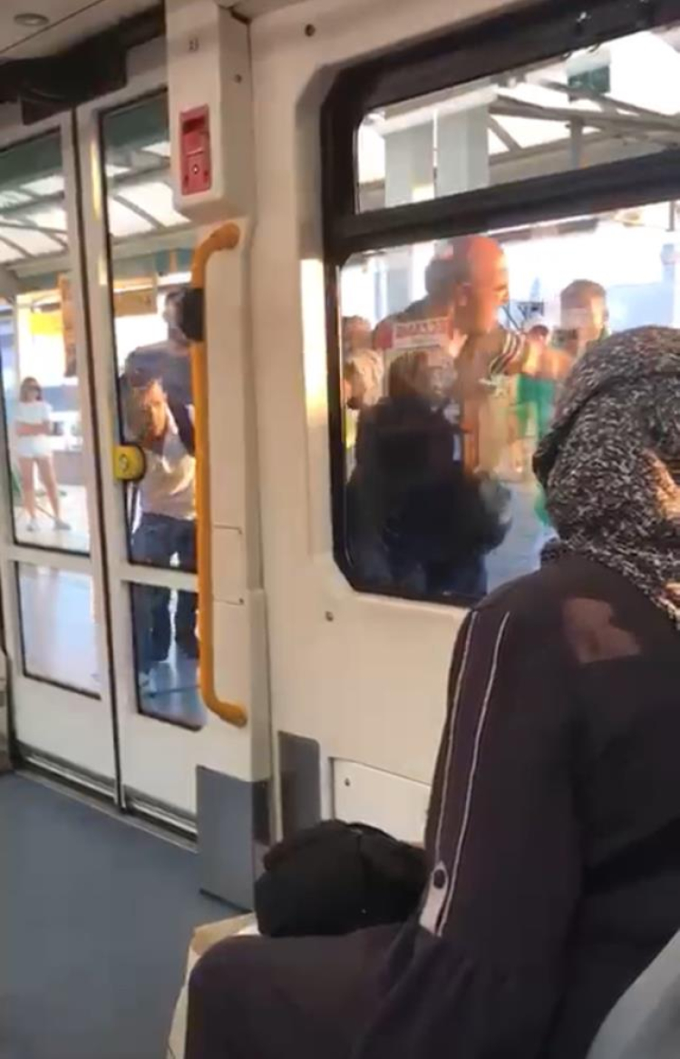 Bursa metrosunda yolcular arasında 'yer verme' kavgası cep telefon kamerasına yansıdı.