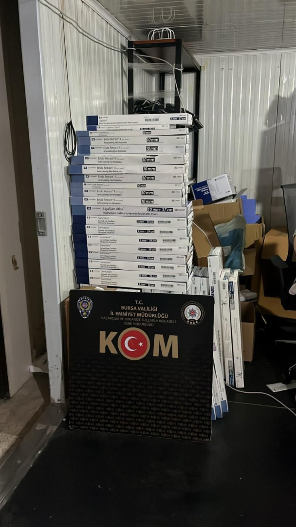Kaçakçılık ve Organize Suçlarla Mücadele Şube Müdürlüğü'ne bağlı Mali Suçlar Büro Amirliği ekipleri aldığı bir duyum üzerine harekete geçti. Yapılan çalışmalarda, ameliyatlarda kullanılmak üzere Bursa Şehir Hastanesi'ne Sağlık Bakanlığı tarafından gönderilen piyasa değeri yaklaşık 20 milyon TL değerindeki çeşitli tıbbi malzemelerin hastane görevlileri tarafından kullanmış gösterilerek satıldığını tespit etti.