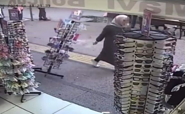 Mersin'de bir kadının, birçok esnafa ait stant ve tezgahta bunulan ürünleri dağıtarak kaçması güvenlik kameralarınca kaydedildi.