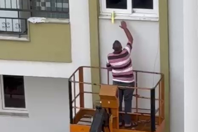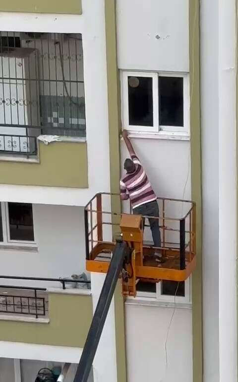 Adana'da bir kişi, evden kaçarak karşı apartmanın pencere pervazına konan sultan papağanını vinçle yakaladı. O anlar, bir vatandaşın cep telefonu kamerasına saniye saniye yansıdı.