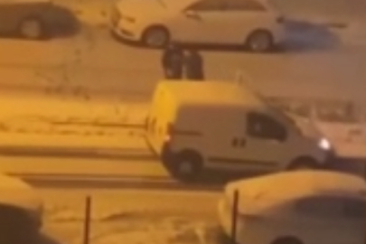 Başakşehir'de hafif ticari araç yolda gittiği esnada kartopu oynayan 2 kişi araca doğru kartopu attı. Araçtan hızla inen sürücü el frenini çekmeyi unutunca kayan aracı kazaya karıştı.