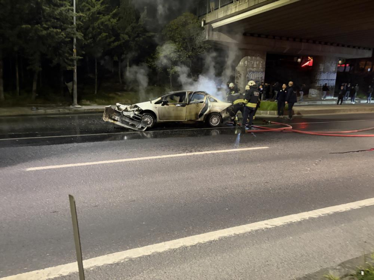 Tekirdağ'ın Kapaklı ilçesinde kontrolden çıkan otomobil kaza yaptı. Kaza sonrası alev topuna dönen otomobili itfaiye ekipleri söndürdü.
