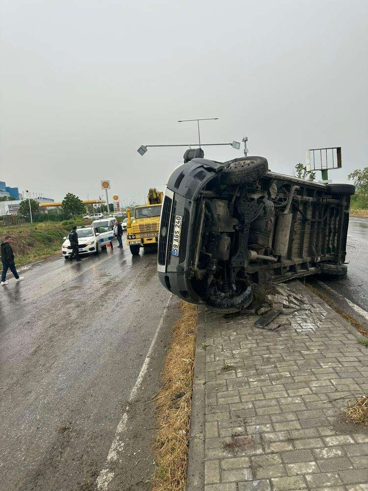 Kaza, sabah saatlerinde Muratlı’nın İstiklal-Kurtpınar OSB Mah.’de meydana geldi. İddiaya göre, Lüleburgaz istikametinden Süleymanpaşa yönüne doğru seyir halindeki M.B. sevk ve idaresindeki 59 AGS 240 plakalı fabrika servis aracı, Muratlı’da aracın lastiğinin patlaması sonucu yoldan çıkarak elektrik direğine çarparak devrildi. Kazada sürücü M.B. ile araçtaki 6 işçi yaralandı.