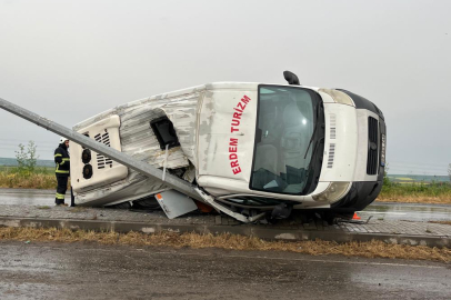 Tekirdağ'ın Muratlı ilçesinde fabrika servisi devrildi, 7 kişi yaralandı.