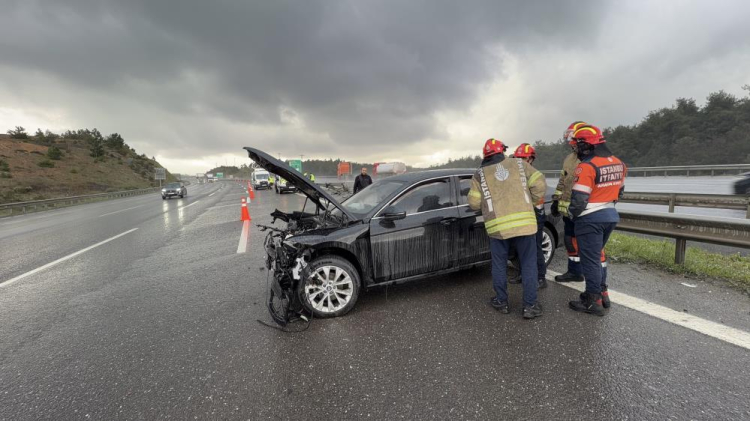 Arnavutköy'de etkili olan şiddetli dolu yağışı sonrası Kuzey Marmara Otoyolu'nda 3 aracın karıştığı zincirleme trafik kazası meydana geldi. Kazada şans eseri yaralanan olmazken, araçlardan biri kullanılamaz hale geldi.
