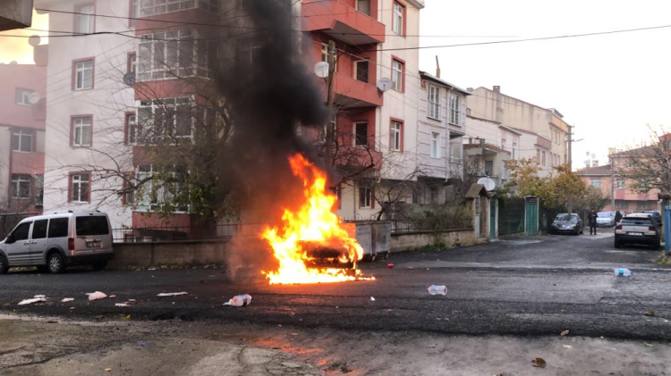 Araç sahibi İdris Yurtseven, “Evdekileri bir yere kadar bırakmıştım. Dönüşte evimin önüne arabayı park edeyim derken birden motor tarafı alev aldı. Ne sebeple çıktığını bilmiyorum. Çok şükür biz de bir şey yok, aracımın sigortası var” diye konuştu.