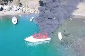 Muğla’nın Marmaris ilçesi Yalancıboğaz mevkiinde bir özel marinada bağlı motoryat yanarak kullanılmaz hale geldi.