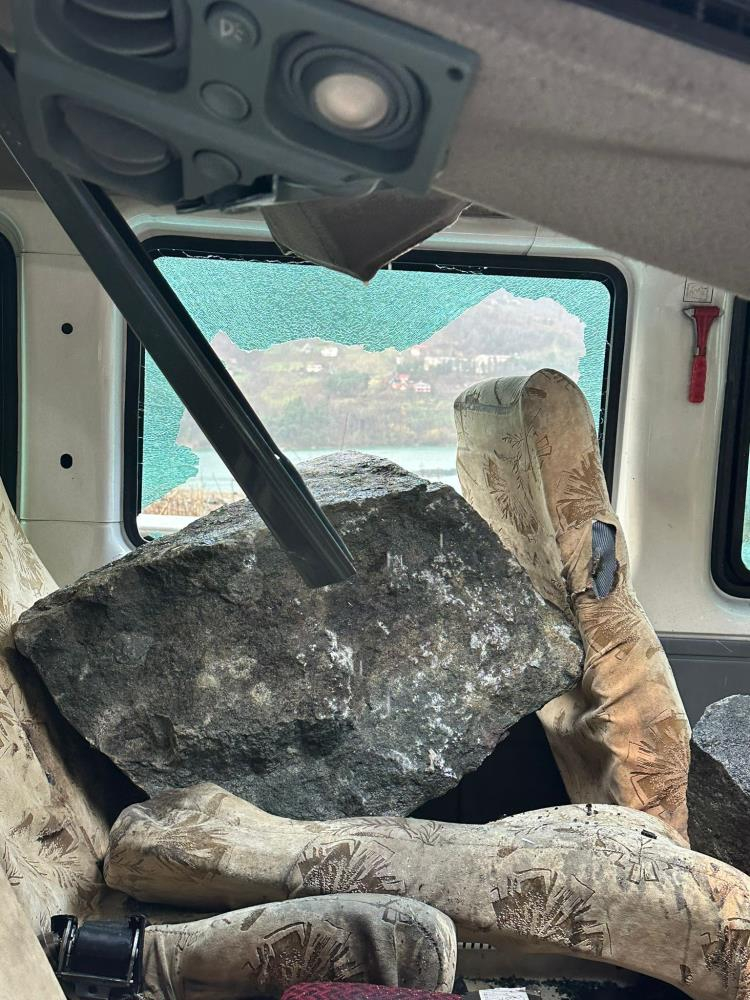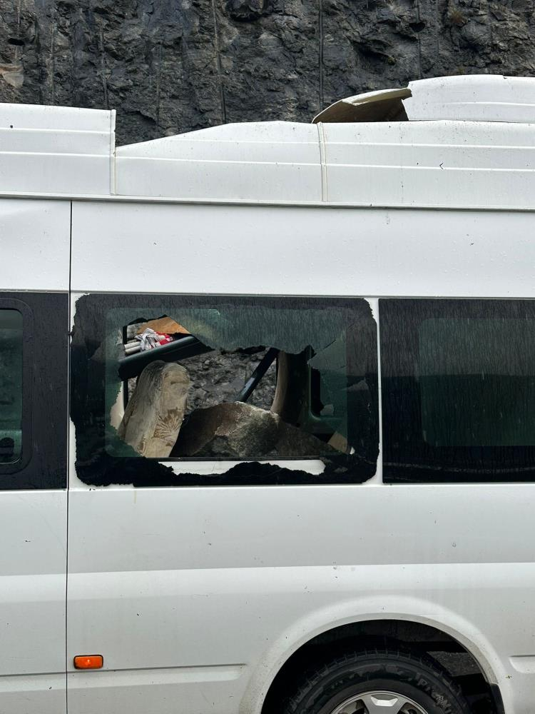 Artvin-Borçka kara yolunda seyir halindeki minibüsün üzerine yamaçtan kopan kaya düşmesi sonucu araç kullanılamaz hale gelirken, kazada can kaybı ya da yaralanma yaşanmadı.