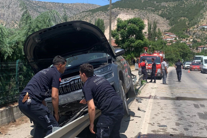 Amasya’da kontrolden çıkan otomobil yol kenarındaki bariyerlere çarparak asılı kaldı. Kazada 1 kişi yaralandı.