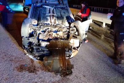 Otomobil köprü üzerinde takla attı, sürücü yara almadan kurtuldu