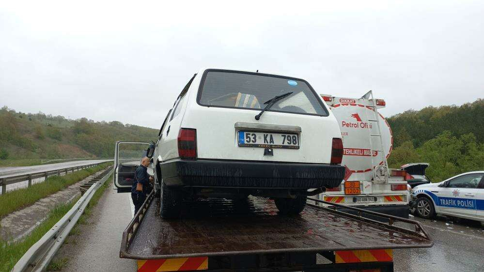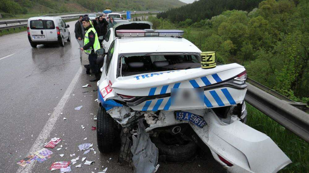 Hamza Yaman yönetimindeki 53 KA 798 plakalı otomobil direksiyon hakimiyetinin kaybedilmesi sonucu yoldan çıkarak emniyet şeridinde park halindeki 55 A 59616 plakalı polis aracına arkadan çarptı. Çarpışmanın şiddetiyle savrulan polis aracı da lastiği patlayan araca çarptı. Kazada, Recep Yaman ve Hatice Yaman yaralandı. Yaralılar, ambulanslarla hastaneye kaldırıldı.