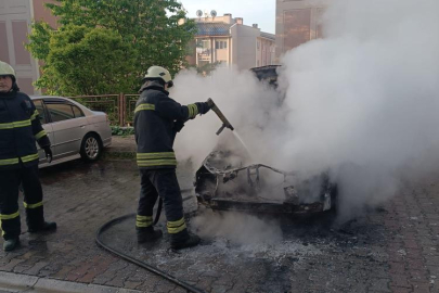 Bolu’da sabah saatlerinde park halindeki bir otomobil alev alev yanarak küle döndü.