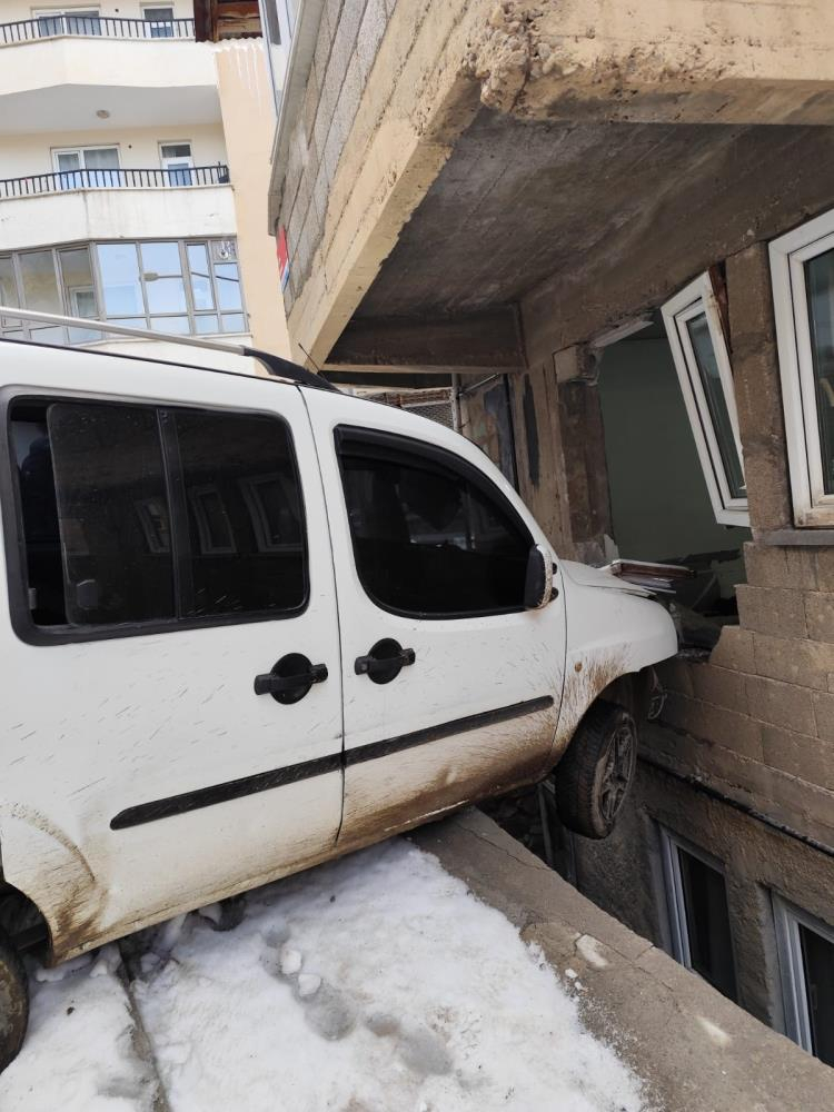 Hakkari’nin Berçelan Mahallesi'nde park halindeki bir araç, yokuş aşağı kayarak bir evin duvarını yıktı.