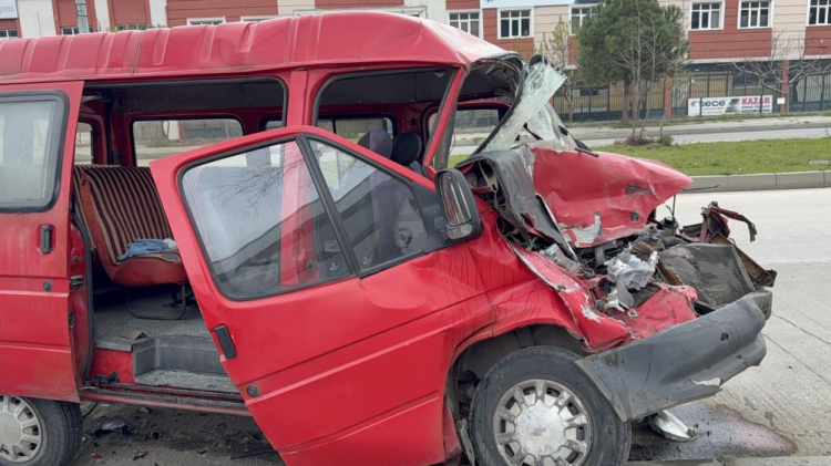 Kazada minibüs hurdaya dönerken, minibüste bulunan sürücü ve bir yolcu ise kazayı yara almadan atlattı.
