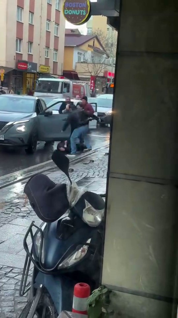 Ümraniye’de park yeri yüzünden çıkan kavgada 3 kişi sürücüyü tekme ve yumruklarla darp etti. O anlar cep telefonu kamerasına yansıdı.