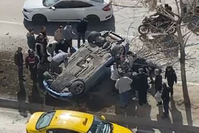 Refüje çarpıp ters dönen araçtan yara almadan kurtuldu