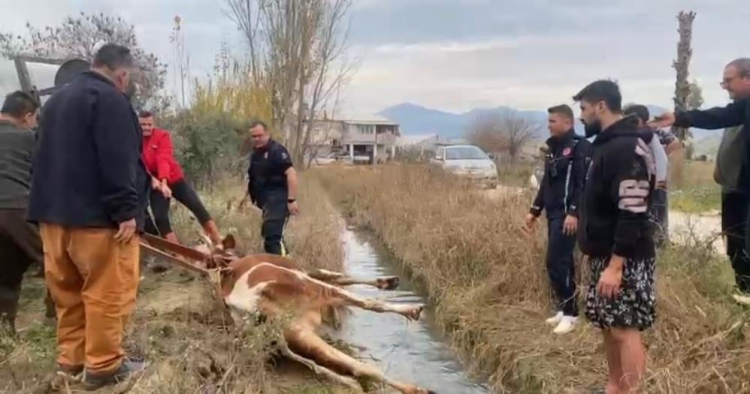 Olay, Serik'e bağlı Karıncalı Mahallesi'nde meydana geldi. Edinilen bilgiye göre, arazide otlarken sulama kanalına düşen ineği fark eden vatandaşlar durumu itfaiyeye bildirdi. İhbarla bölgeye gelen Antalya Büyükşehir Belediylesi Serik İtfaiye birimi ekibi vatandaşların da desteğiyle halatla ineği bulunduğu yerden çıkardı.