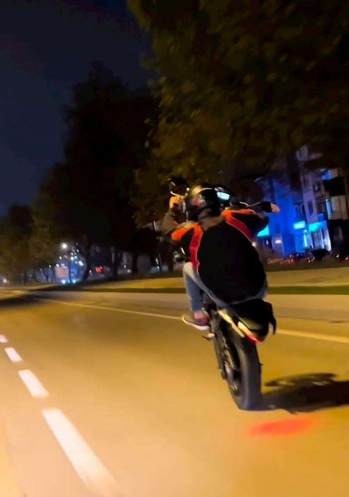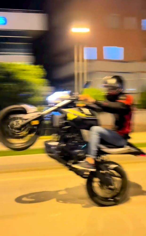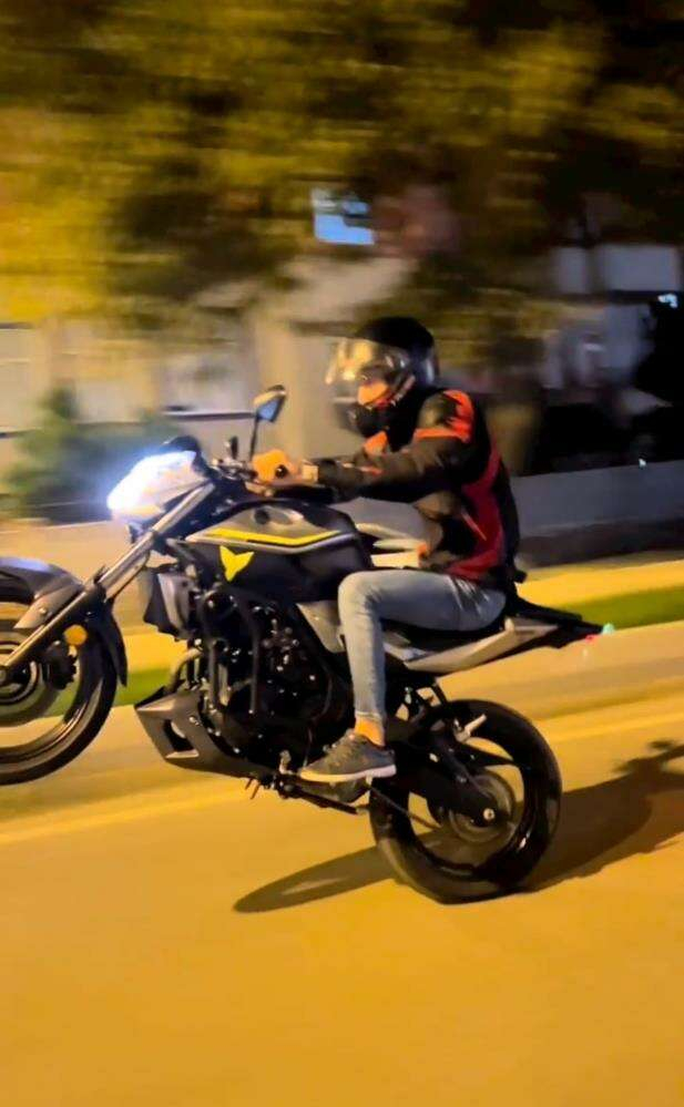Bursa-Ankara Karayolu üzeri İnegöl girişinde seyir halinde olan bir motosikletlinin tehlikeli yolculuğu yürekleri ağza getirdi. Motosikletli, trafikte tek teker üzerinde metrelerce şov yaparak ilerledi. Tehlikeli şov, başka bir sürücü tarafından cep telefonu kamerası ile görüntülendi. Motosikletli, karayolunda akan trafiğe aldırış etmeden ön tekerini kaldırarak seyahat etti. Hız sınırlarını aşan sürücünün tehlikeli anları, arkasından gelen başka bir otomobil sürücüsü tarafından kaydedildi. Sosyal medyada paylaşılan görüntü, tepkilere yol açtı.
