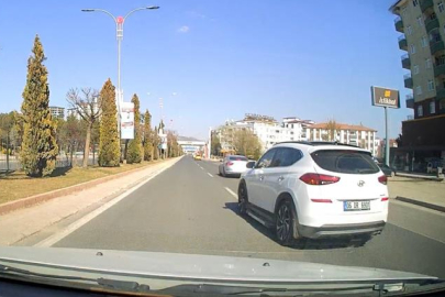 Elazığ'da trafikte makas atarak ilerleyen sürücü hem kendisinin hem de başkalarının hayatını tehlikeye atarken o anlar araç kamerasına yansıdı.