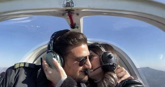 Uçak içerisinde evlilik teklifi ettiği anlar ortaya çıktı