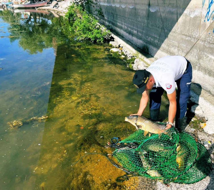 Bursa İl Jandarma Komutanlığı'na bağlı Nilüfer Jandarma Asayiş Bot Komutanlığı, Uluabat Gölü'nde balık çeşitliliğini korumak, ekolojik dengeyi sağlamak ve aranan şahıslara yönelik suda ve karada çalışmalarına devam ediyor. 20 ile 27 Mayıs 2025 tarihleri arasında çalışma yapan ekipler usulsüz su ürünleri avcılığı yapan 3 şahsa toplam 52 bin 380 lira idari para cezası uygulandı. Öte yandan, canlı olarak ele geçen toplam 346 kilogram sazan balığı Uluabat Gölü'ne bırakılarak doğal yaşama geri kazandırıldı.