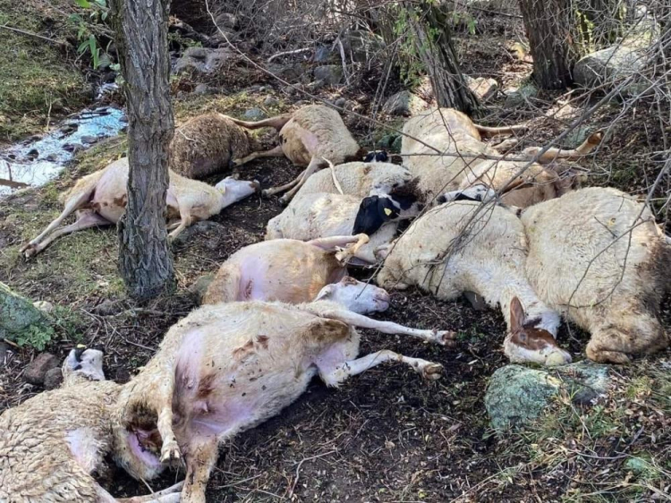 Çankırı'nın Korgun ilçesinde yıldırım düşmesi sonucu 14 koyun telef oldu.