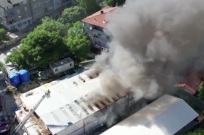 Başakşehir'de şantiyeye ait işçilerin kaldığı yatakhanede yangın çıktı.