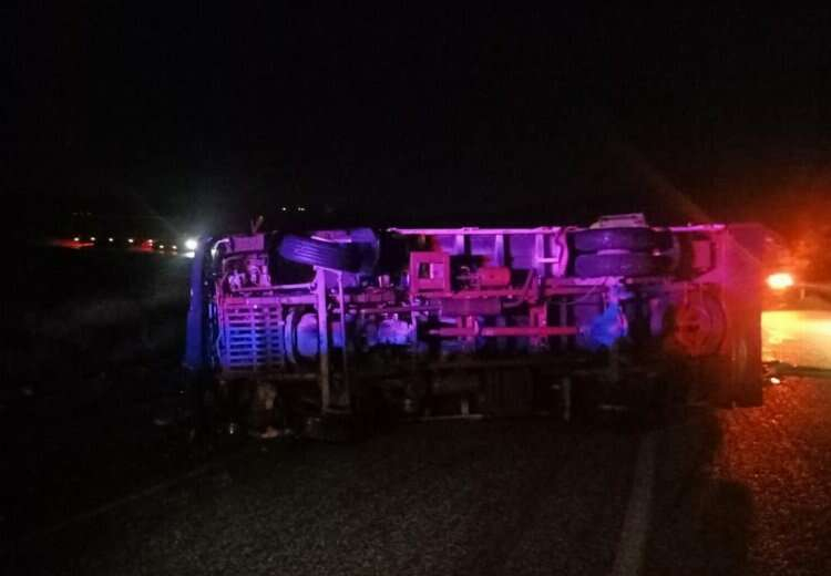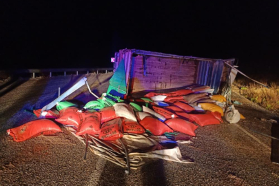 Yem yüklü kamyon yan yattı: 1'i ağır 3 yaralı