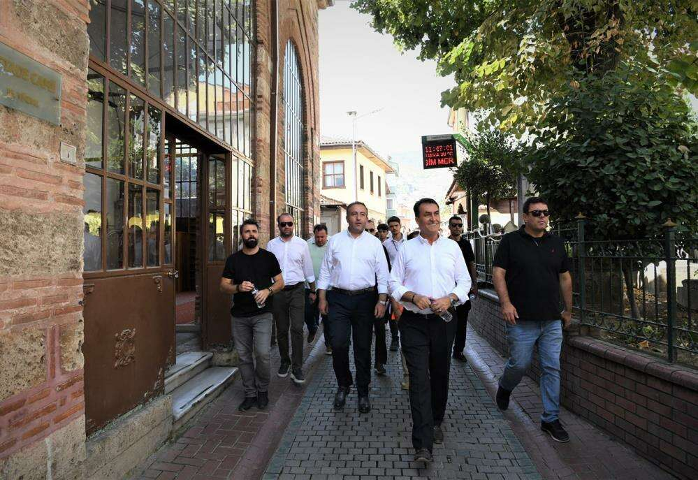 Bursa’nın ilk yerleşim yeri olan Hisar İçi’nin yaşayan bir tarih olarak korunup yaşatılması, özgün özellikleriyle geleceğe aktarılması hedefiyle Osmangazi Belediyesi tarafından devam eden ‘Yaşayan Tarih Hisar İçi’ projesinde büyük mesafe kat edildi. Osmangazi Belediye Başkanı Mustafa Dündar, 3 medeniyetin izlerini taşıyan tarihi bölgede bugüne kadar gerçekleştirilen çalışmaları AK Parti Osmangazi İlçe Başkanı Ufuk Cömez’in de katıldığı programla basın mensuplarına yerinde anlattı.