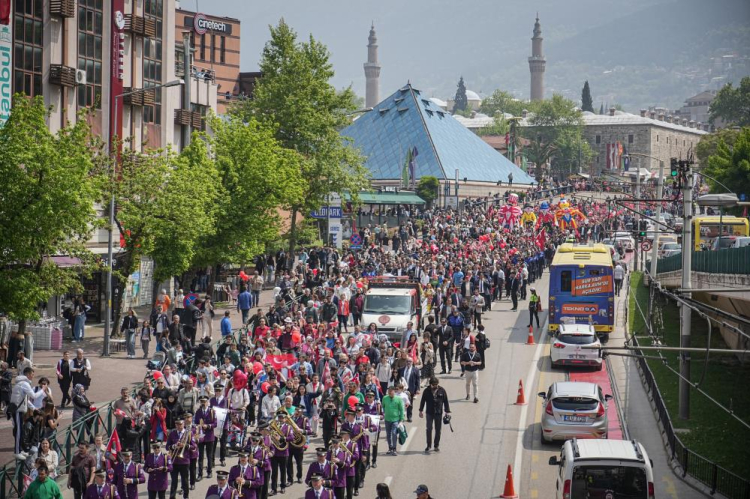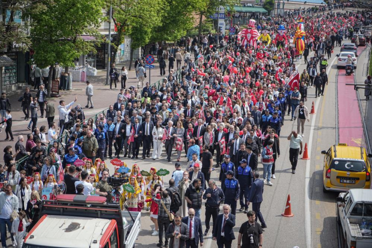 23 Nisan'da Bursalı binlerce çocuk ellerinde bayraklarla yürüdü