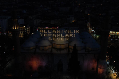 626 yıllık Ulu Cami'ye Ramazan mahyası asıldı