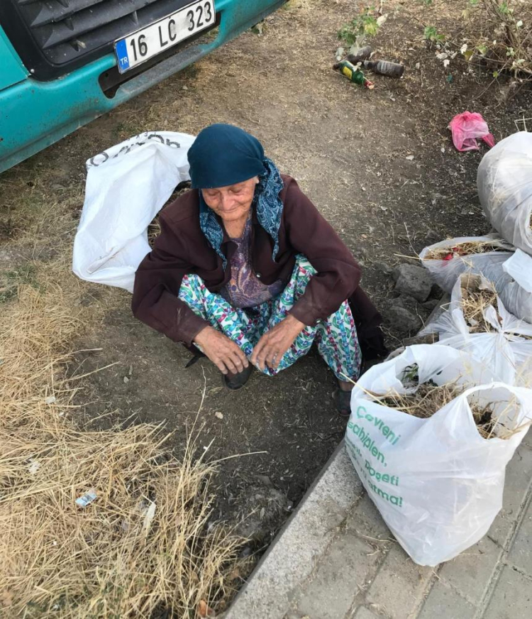 82 yaşındaki Nefise teyzeden örnek çevre hareketi