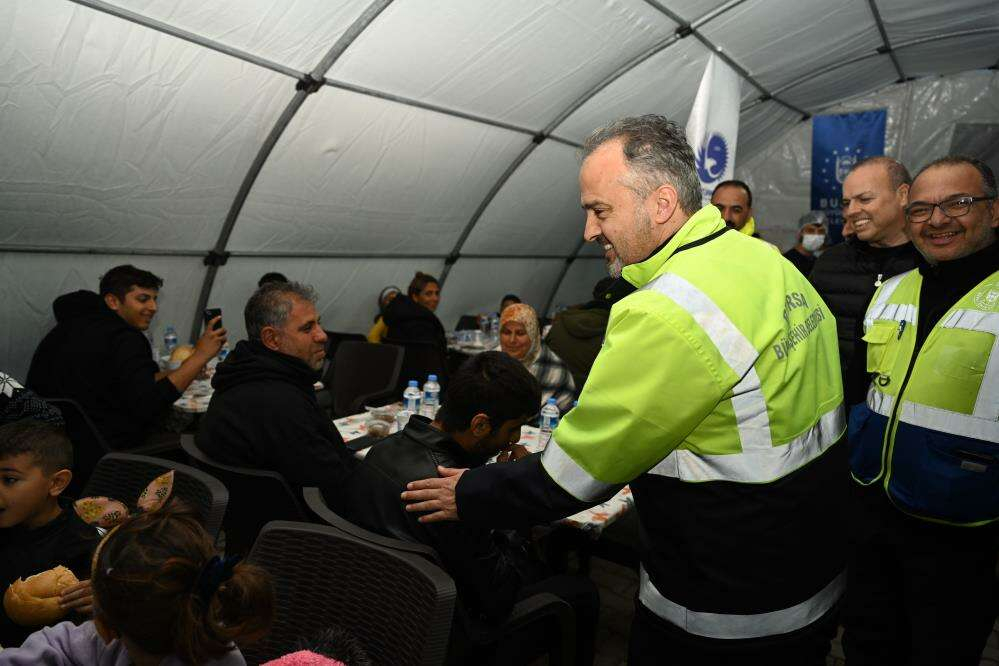 Asrın felaketinde Hataylıların yaralarını sarmak için yoğun mesai harcayan Bursa Büyükşehir Belediyesi, Ramazan’ın manevi iklimini Hatay’da da yaşatıyor. Bursa’da Fevzi Çakmak Caddesi Otoparkı ve Emirsultan Meydanı’nda geleneksel iftar programlarına devam eden Büyükşehir Belediyesi, Hatay’ın Narlıca Mahallesi’nde 3 ayrı noktaya iftar çadırları kurdu. Balkantürksiad ve Türkiye Sağlıklı Kentler Birliği başta olmak üzere hayırseverlerin sponsorluğunda düzenlenen iftarlarda depremzede vatandaşlar da Ramazan manevi hazzını yaşama imkanı buluyor.