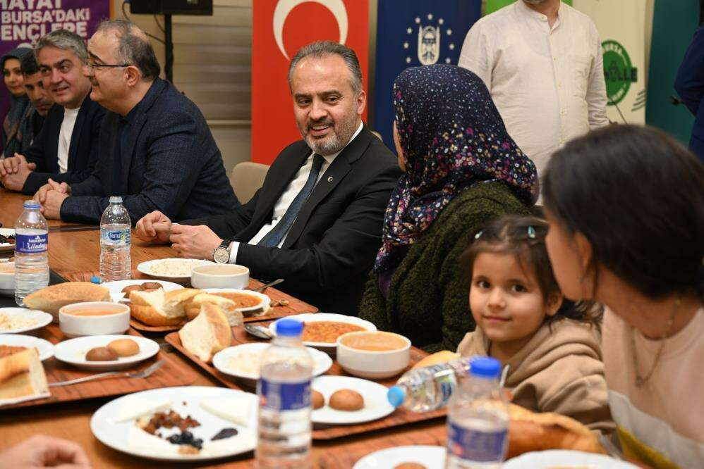 Bursa Büyükşehir Belediye Başkanı Alinur Aktaş, 11 ayın sultanı Ramazan ayının manevi iklimini Bursa’da geçiren depremzedelerle birlikte iftar sofrasında buluştu. Emirsultan KYK yurdundaki iftar programına 350 depremzenin yanı sıra Gençlik ve Spor Bakanlığı Hukuk Hizmetleri Genel Müdür Yardımcısı Ahmet Bensiz, Gençlik ve Spor Bursa İl Müdürü Rahmi Aksoy da katıldı. İftar öncesinde depremzedelerle sohbet eden Başkan Aktaş, vatandaşlara kendi elleriyle yemek ikramında bulundu.