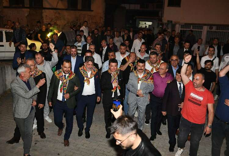 Kendisini büyük coşku ve meşalelerle karşılayan hemşehrilerine teşekkür ederek sözlerine başlayan Osmangazi Belediye Başkanı Erkan Aydın, “Bu gurur, sevinç ve haklı kutlamalar aslında benim değil hemşehrilerimin başarısı. Ben, temsil makamında olan bu yarışa medeni cesaret göstererek çıktım ama zaferi kazanmamızı sağlayan dağ yöresi insanıdır. Yöre insanımız burada 700 yıldır yaşamasına rağmen hak ettiğini alamadığını düşünüyoruz. Hemşehrilerimin büyük desteğiyle halkımızın teveccühüyle Allah da nasip etti bu dönem Osmangazi Belediye Başkanı olarak vatandaşlarımıza hizmet etme fırsatımız oldu. Allah, bizleri mahcup etmesin. Halkımızın bize yüklediği sorumluluğun farkındayız. İşimizin kolay olmadığının bilincindeyiz. Biz bu bilinçle yola çıktık. Çok çalışma sözüyle hep birlikte bunun da üstesinden geleceğiz. Hep birlikte el ele, Bursa, Dağ yöresi ve Osmangazi’ye güzel hizmetler edeceğiz.” dedi.