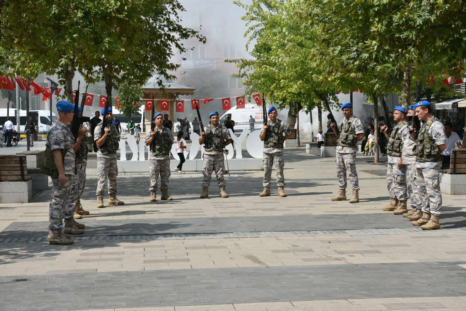 Tarihi belediye meydanında ilçenin düşman işgalinden kurtuluşunun temsili olarak canlandırıldığı törene Kaymakam Rahmi Köse, Garnizon Komutan Vekili Yarbay Lütfi Kocamanoğlu, siyasi partilerin ilçe başkanları, muharip gaziler, muhtarlar, sivil toplum kuruluşlarının temsilcileri ile çok sayıda vatandaş katıldı.