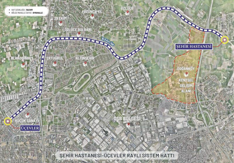 Göreve geldikten sonra Raylı Sistemler Dairesi Başkanlığı’nı kurduklarını hatırlatan Başkan Mustafa Bozbey, yaklaşık 60 kilometrelik planlanan hattı; güzergâh, yolcu talebi, hat entegrasyonları, depo alanları, raylı sistemler araç ihtiyacı ve işletme verimliliğiyle birlikte bütüncül biçimde ele aldıklarını anlattı.