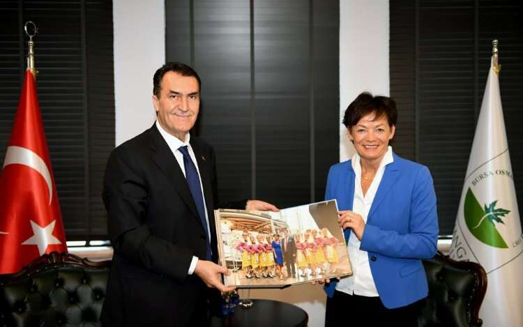 Almanya Hessen Eyaleti Bakanı Lucia Puttrıch, kardeşlik anlaşmasının yıl dönümünde Osmangazi Belediye Başkanı Mustafa Dündar’ı ziyaret etti.