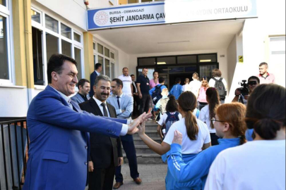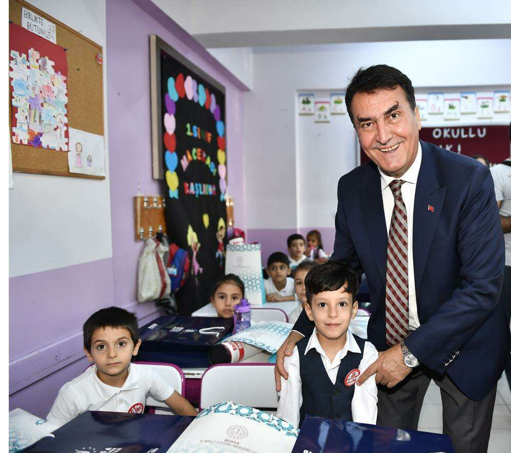 Osmangazi Belediye Başkanı Mustafa Dündar, öğrencilere kırtasiye seti, öğretmenlere ise kalem hediye etti.