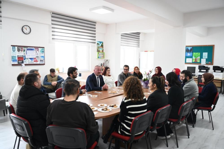 Öğretmenlerle de bir süre sohbet eden Başkan Karabatı, ziyaretin sonunda öğrencilerle hatıra fotoğrafı çektirerek programını tamamladı.