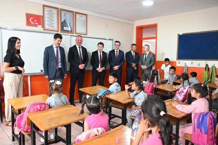 Karacabey’de yeni eğitim-öğretim yılı bugün itibariyle başladı. Karacabey Belediye Başkanı Fatih Karabat, İlçe Kaymakamı Hakan Kafkas ve İlçe Milli Eğitim Müdürü Hacı Ongun ile birlikte yeni eğitim-öğretim yılı sebebiyle ilçedeki Uluabatlı Hasan İlkokulu’nu ziyaret etti. Yeni eğitim-öğretim yılının ilk gününde öğrencilerin heyecanına ortak olan Karabatı, protokol ile beraber tüm sınıfları gezerek yeni dönemin tüm öğrencilere ve öğretmenlere hayırlı olmasını diledi.
