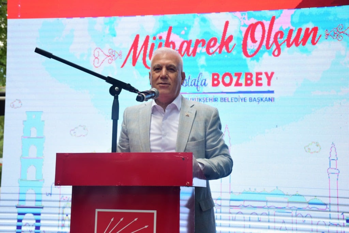 İnsanı öncelemeyen hiçbir projenin içinde olmayacaklarını belirten Bozbey, “Hedefimiz kentimizi hak ettiği yere taşırken hemşehrilerimizin yüzünün güldüğünü görmek. Kimseyi ötekileştirmeden herkesin eşit şartlarda yaşaması için çalışmalarımızı başlattık. Yeniden yeşil Bursa için ilk tohumları ektik, ekmeye de devam ediyoruz. 1/10000 binlik planla Bursa’nın anayasasını hep birlikte oluşturacağız. Tarihi, turizmi ve tarımıyla Bursa’yı dünya kentleriyle yarışır hale getirmek boynumuzun borcudur. Bunu yaparken tıpkı ihtiyaç sahibi emeklilerimize ve ihtiyaç sahiplerine dağıttığımız yardım çekleri gibi hak edene vereceğiz. İşsizleri, emeklileri, kadınları asla unutmayacağız. Nasıl ki milli bayramlarımız Bursa’da coşkuyla kutlanıyorsa dini bayramlarımızı da coşku ve huzurla kutlanacaktır. Bu gece 12’den itibaren 4 gün boyunca ulaşım ücretsiz. Mezarlık ziyaretlerinde de hemşehrilerimiz ücretsiz otobüsleri kullanabilecekler. Birçok sosyal ve kültürel hizmeti, sorun olan işlerin çözümü noktasında da varız. Ulaşım, deprem hazırlıklarımız son sürat devam ediyor. Bursalılar bunun için yıllarca bekledi ve sonunda fırsat geldi. Bunu yapacak bilgimiz de var, birikimimiz de var” diye konuştu.