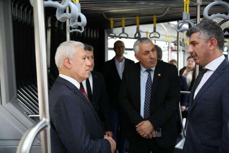 Bursa’yı metrobüs ile tanıştırmaya hazırlanan Bozbey, CHP İnegöl Belediye Başkan Adayı Ali Doğan ve Ulaşım Group Şirketler Genel Müdürü Şaban Baka ile birlikte 3 kabinden oluşan 25 metre uzunluğunda 281 yolcu kapasiteli metrobüsü gezerek incelemelerde bulundu ve ön siparişini verdi.