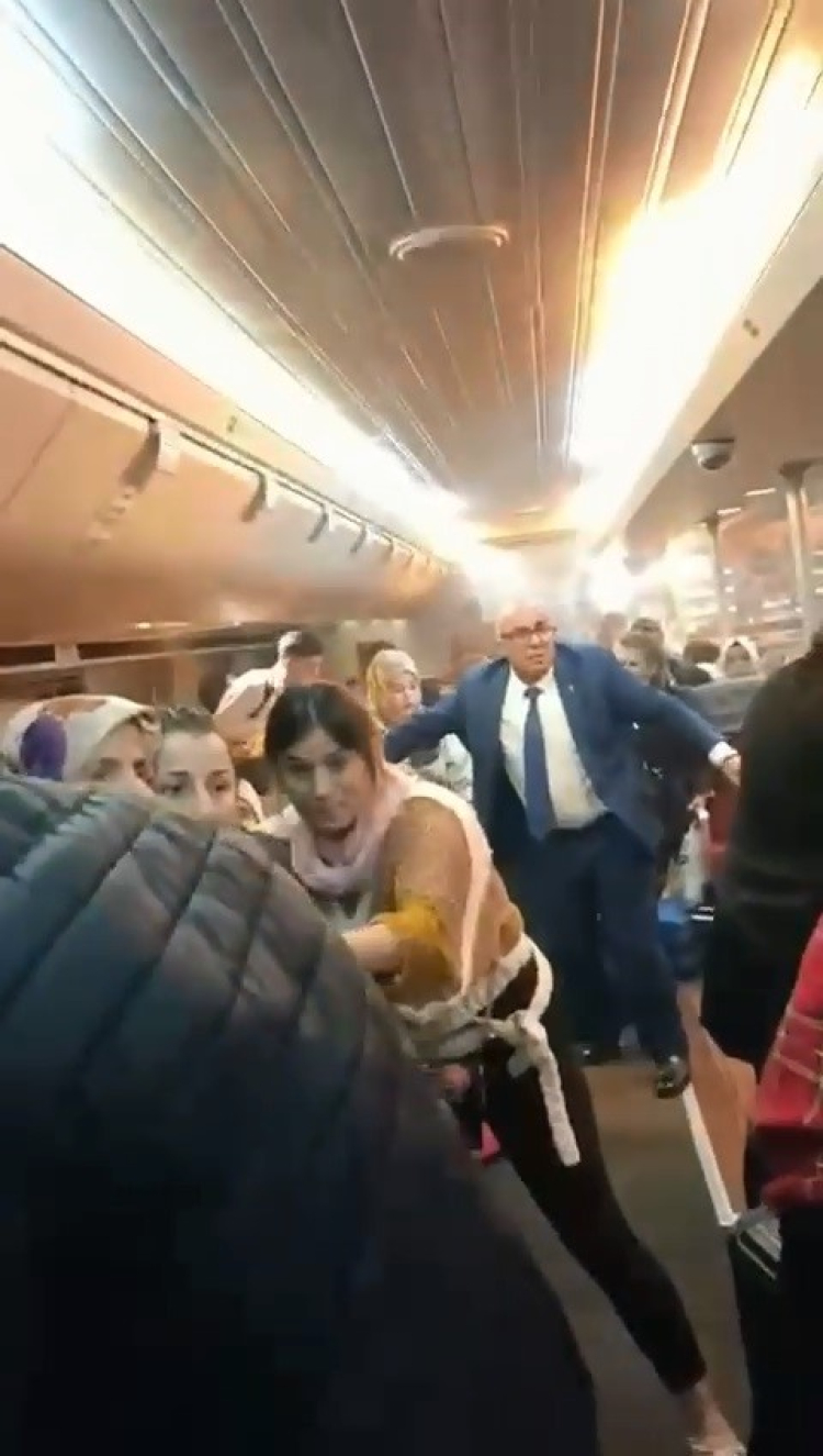 İstanbul'dan Bursa'ya hareket eden BUDO deniz otobüsünde çıkan yangın sırasında yaşanan panik kameralara yansıdı.