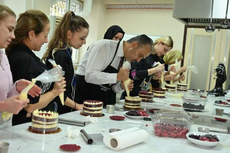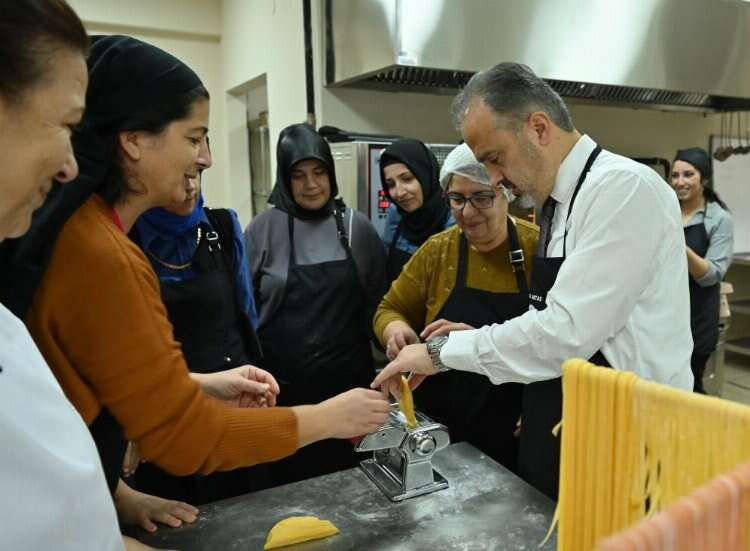 Program sonunda eğitim sınıflarını gezen Başkan Alinur Aktaş, önlük giyerek mutfaktaki hünerlerini sergiledi. Kursiyerlerle birlikte el yapımı makarna ve yaş pasta yapan Başkan Aktaş, daha sonra yaptığı ürünleri kursiyerlere ikram etti.