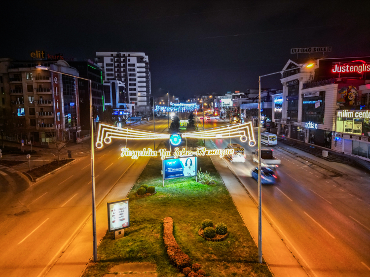 Bursa Büyükşehir Belediyesi, Fatih Sultan Mehmet Bulvarı, Setbaşı, Gökdere, Fomara, 15 Temmuz Demokrasi Meydanı, Hanlar Bölgesi ve Teleferik Meydanı gibi yoğun yaya ve araç trafiğine sahip noktaları Ramazan ayına özel mahyalarla süsledi.