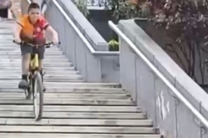 Bursa'nın tarihi Tophane semtinde 10 yaşlarındaki bir çocuk, bisikletiyle dik merdivenlerden indi. Görenleri hayrete düşüren cesur hareket, çevredeki vatandaşlar tarafından alkışlarla desteklendi. Minik bisikletlinin o anları ise kameralara yansıdı.