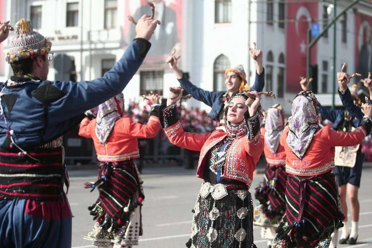 Öğrencilerin şiir okumasının ardından, Yıldırım Belediyesi Halk Oyunları ekibinin gösterisi beğeni topladı. Bursa Uludağ Üniversitesi Halk Oyunları Topluluğu’nun ‘Zeybek’ gösteri protokol ve seyircilerden tam not aldı. Mehter takımının mini konseri ve kılıç kalkan gösterisi ile programın ilk kısmı tamamlandı. Programın geçiş programında öğrenciler, gaziler, polisler, askerler ve sivil toplum kuruluşları protokolü selamladı. Protokol üyelerinin ve vatandaşların katılımı ile heykel önünden başlayan yürüyüş Cumhuriyet Caddesi’nde son buldu.