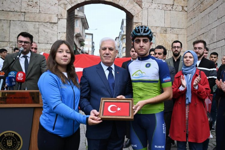 Konuşmanın ardından sporcular tarafından Başkan Mustafa Bozbey’e Türk Bayrağı işlemeli tablo hediye edildi. Saltanat Kapıdan başlayıp Atatürk Anıtı’na kadar devam eden kortej, büyük bir coşkuyla gerçekleştirildi.